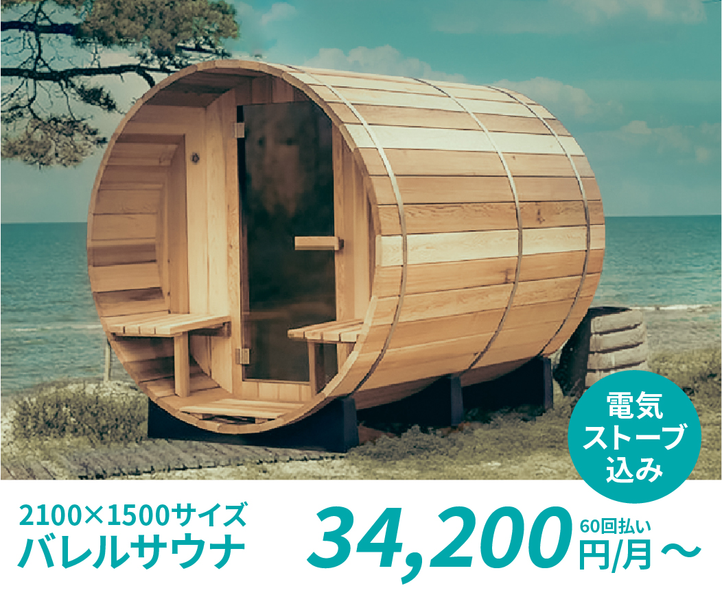 バレルサウナφ2100×1500 50,300円/月 40,100円/月 34,200円/月