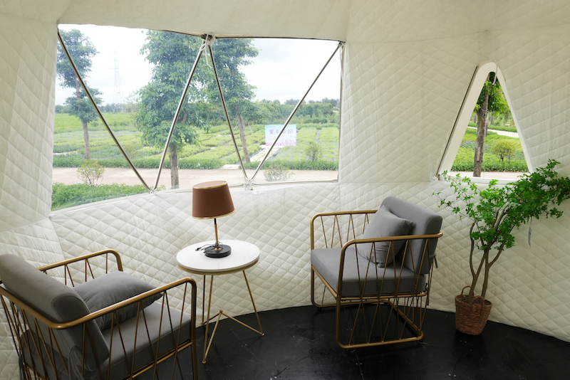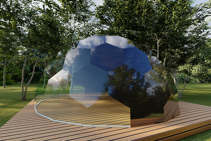透明なフレームレスドーム。断熱内幕によりグラピングに最適なドームテントとなっています。特徴的なデザインはアイキャッチは集客効果が抜群です。